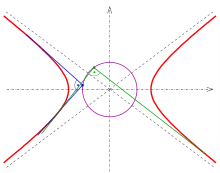 qui a deux solutions correspondant aux deux tangentes passant par . Le terme constant d'une équation quadratique monique est toujours le produit de ses solutions. Donc, si les tangentes se rencontrent en orthogonalement, les équations suivantes sont vérifiées :