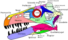 L’os préfrontal ou préfrontal est un os séparant l'os lacrymal et l'os frontal trouvé dans de nombreux crânes de tétrapodes. Il est apparu dans le clade des Rhipidistia, qui comprend dipneustes et tétrapodomorphes[1]. Le préfrontal se trouve chez la plupart des dipneustes fossiles et actuels, les amphibiens et les reptiles. C'est un os très petit, fusionné au frontal ou qui a disparu chez de nombreux théropodes et est complètement absent chez leurs descendants modernes, les oiseaux. Le préfrontal a également disparu au début de l'apparition des Mammaliaformes et est donc absent chez les mammifères actuels[2].