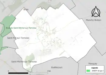 Le territoire communal comprend une ZNIEFF de type 1[Note 2] : le bois de Saint-Michel-sur-Ternoise, d’une superficie de 194 hectares et d'une altitude variant de 25 à 146 mètres. Cette ZNIEFF est occupée dans sa partie centrale par un massif forestier typique des bois artésiens avec hêtraie, érablaie et frênaie[10].