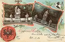 Double statue des margraves-frères Jean Ier et Othon III par Max Baumbach (1900), une partie de l'ancienne allée de la Victoire (Siegesallee) à Berlin, aujourd'hui dans la citadelle de Spandau. | |