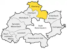 Localisation du Verbandsgemeinde de Otterberg dans l'arrondissement de Kaiserslautern