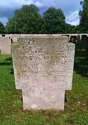 Il est inhumé au cimetière militaire allemand de Champigny-Saint-André (Eure) (bloc 16, ligne 1, tombe 9).