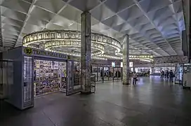 Bâtiment d'accès à la station, avec au fond le bâtiment de la gare ferroviaire. | ||||||||