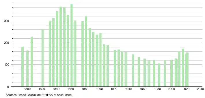 - Fiches Insee - Populations légales de la commune pour les années 2006, 2007, 2008, 2009, 2010, 2011, 2012, 2013, 2014, 2015, 2016, 2017, 2018, 2019, 2020 et 2021.