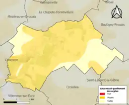 Le retrait-gonflement des sols argileux est susceptible d'engendrer des dommages importants aux bâtiments en cas d’alternance de périodes de sécheresse et de pluie. 74,4 % de la superficie communale est en aléa moyen ou fort (52,8 % au niveau départemental et 48,5 % au niveau national). Sur les 372 bâtiments dénombrés sur la commune en 2019, 346 sont en aléa moyen ou fort, soit 93 %, à comparer aux 70 % au niveau départemental et 54 % au niveau national. Une cartographie de l'exposition du territoire national au retrait gonflement des sols argileux est disponible sur le site du BRGM[18],[Carte 2].