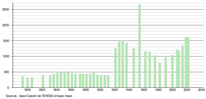 En 2021, la commune comptait 1 604 habitants[Note 3], en augmentation de 19,61 % par rapport à 2015 (Côte-d'Or : +0,44 %, France hors Mayotte : +1,84 %).