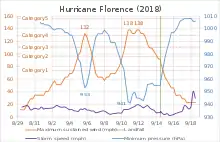 - (en) Stewart, « Hurricane Florence Tropical Cyclone Update », National Hurricane Center, 14 septembre 2018 à 7 h 5 (consulté le ).
