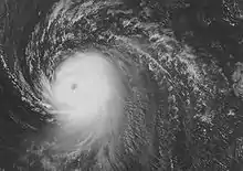 Le même scénario s’est répété la nuit et le jour suivant, maintien durant la nuit et intensification le jour. Tard le matin du , un œil est apparu sur les images satellitaires infrarouge et il est devenu clairement visible en après-midi, ce qui a permis au NHC de reclasser le système au niveau d’ouragan de catégorie 1, dans l’échelle de Saffir-Simpson, alors qu’il était à 21,6N 52,7W, en plein océan[16],[17]. Les conditions de faible cisaillement et de températures chaudes de la mer permettaient de prévoir une intensification explosive, ce qui lui permit d’atteindre la catégorie 3 seulement trois heures plus tard[18]. Les vents estimés par la technique de Dvorak étaient de 185 km/h et la pression centrale était tombée de 24 hPa durant cette courte période[18],[19].