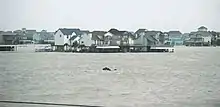 C'est la région à l'Est de l'œil qui a eu la plus forte onde avec 6,5 mètres à Sabine Pass, une centaine de kilomètres à l'est de Galveston (voir carte), la plus importante jamais enregistrée pour un ouragan de catégorie 4[91],[92]. Cette onde de tempête plus importante à l'est de l'île a pu s'engouffrer dans la baie de Galveston puis s'ajouter avec la marée montante (marée haute à 4 h 14) de 2,3 mètres pour venir inonder les arrières de la ville[93]. La ville était donc entourée d'eau de toutes parts.
