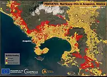 L'ouragan Otis est la quinzième tempête tropicale nommée de la saison cyclonique 2023 dans l'océan Pacifique nord-est. En 24 heures, il passe d'une tempête tropicale avec des vents soutenus de 85 km/h à un ouragan avec des vents de 260 km/h, soit une augmentation de 175 km/h. Il présente ainsi la seconde croissance la plus rapide enregistrée après l'ouragan Patricia de 2015, et la plus rapide enregistrée dans le Pacifique Est. Otis atteint la catégorie 5 puis touche terre le , à proximité de la station balnéaire d'Acapulco laquelle subit des dégâts très étendus. Il est le premier de catégorie 5 à toucher terre sur la cote Est-Américaine[1]. Malgré son extrême intensité, Otis n'a présenté qu'un rayon de 110 kilomètres de vents violents.