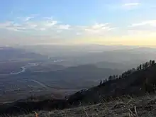 Vue en direction du sud-est avec les monts Katoun au fond.