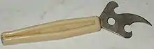 Ouvre-boîte allemand, modèle ancien, à molette crantée horizontale.