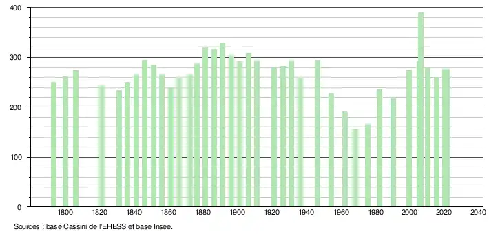 - Fiches Insee - Populations légales de la commune pour les années 2006, 2007, 2008, 2009, 2010, 2011, 2012, 2013, 2014, 2015, 2016, 2017, 2018, 2019, 2020 et 2021.
