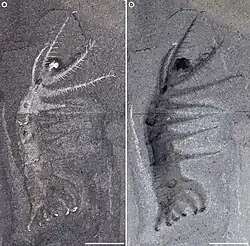 À l'avant de l'animal, il avait une trompe réversible, avec sa bouche à l'extrémité. Cette trompe a probablement été utilisée pour sucer les particules de nourriture capturées par les épines, peut-être de la même manière qu'un concombre de mer actuel. Sa tête n'était pas bien séparée du corps. Il avait deux petits organes visuels (0,1 mm de diamètre) sur la tête, probablement très primitifs[1].