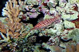 Oxycirrhites · Bécasse à carreaux, Épervier à long nez, Poisson-faucon à long nez
