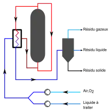 Le principe est le même que pour l'incinération : l'oxydation des composés, mais dans un milieu aqueux à haute température (200 à 300 °C) et haute pression (20-150 bar) en présence d'un composé oxydant (air, dioxygène, eau oxygénée, etc.) et parfois d'un catalyseur[8].