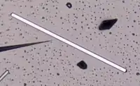 - la technique de croissance VS (pour Vapeur-Solide) ou, dans le cas de l'utilisation d'un catalyseur métallique, de la méthode VLS (pour Vapeur-Liquide-Solide). Dans ce cas, un creuset contenant de la poudre de VO2[42] ou de V2O5[43] est placé au centre d'un four atteignant une température d'environ 1 000 °C et sous flux de gaz inerte (typiquement de l'argon ou d'hélium). Le flux de gaz entraine les espèces évaporées qui viennent se condenser sous la forme de nanofils sur des substrats (silicium, saphir, etc.) placés à quelques centimètres du creuset. La présence de nano gouttelettes de V2O5 durant la synthèse favoriserait la nucléation et la croissance des nanofils de VO2[44] ;
