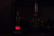 réaction qui s'accompagne d'une très faible luminescence rouge foncé[1] par relaxation des molécules d'oxygène singulet.