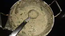 Une pâte non cuite et une louche