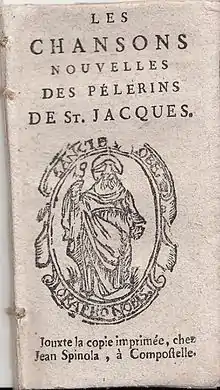 Au XVIIIe siècle, les pèlerins achètent des feuilles imprimées ou placards, portant une image de saint Jacques bénissant des jacquets, avec le texte d’une chanson de route.