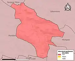 Le retrait-gonflement des sols argileux est susceptible d'engendrer des dommages importants aux bâtiments en cas d’alternance de périodes de sécheresse et de pluie. La totalité de la commune est en aléa moyen ou fort (94,5 % au niveau départemental et 48,5 % au niveau national). Sur les 44 bâtiments dénombrés sur la commune en 2019, 44 sont en aléa moyen ou fort, soit 100 %, à comparer aux 93 % au niveau départemental et 54 % au niveau national. Une cartographie de l'exposition du territoire national au retrait gonflement des sols argileux est disponible sur le site du BRGM[21],[Carte 3].