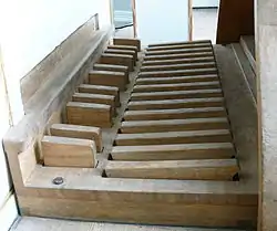 - le pédalier classique français (conservé dans les orgues classés « Monument historique ») à marches parallèles courtes ;