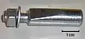 - Les manivelles sont maintenues en place et le fretting est empêché grâce à un boulon ou un écrou placé dans (ou sur) l'axe du pédalier. La tête du boulon ou l'écrou est dans un trou à fond plat qui est fileté lui aussi afin que l'on puisse y glisser un extracteur de manivelle. Le trou est souvent recouvert d'une couverture anti-poussière.