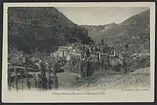 Le village de Pégairolles-de-l'Escalette vu depuis Camp Rouch. | |||||