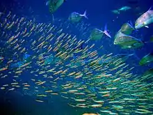 L'adjectif pélagique dérive de pélagos pour préciser qu'une espèce vit en pleine mer. Un chalut pélagique est utilisé dans la colonne d'eau : il n'est pas traîné sur le fond.