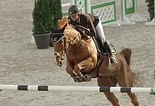 - Nice Stéphanie : Jument baie Selle suédois, née en 2004, par Cardento x Ralmé Z, propriété de Genevière Megret[25].