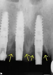 La péri-implantite est la perte progressive de l'os péri-implantaire à la suite d'une réaction inflammatoire[1].