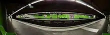 La station comporte deux entrées décorées d’un carrelage blanc et beige. La station, quant à elle, a le vert comme couleur dominante sur les panneaux décorant les murs ainsi que sur les bancs d’attente. Les sols, ainsi que les plafonds, sont de couleur noire.