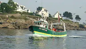 - La pêche artisanale, qui est la plus diversifiée, et occupe de nombreuses personnes. Un artisan est un patron embarqué, propriétaire du navire, possédant au maximum deux navires d'une longueur n'excédant pas 24 mètres[42]. La pêche artisanale française concerne donc des bateaux de petite et moyenne taille (6 à 24 mètres) et de nombreuses techniques. En son sein, il convient de distinguer encore : la pêche artisanale côtière, qui concerne les bateaux les plus petits (6 à 16 mètres), avec 1 à 4 hommes à bord, qui font des marées courtes (de quelques heures à 3 journées) ; et la pêche artisanale hauturière, un type de pêche hauturière lorsque le bateau passe plus de 96 heures d'affilée en mer. La pêche hauturière peut donc être artisanale. Elle concerne les navires de 16 à 24 mètres, avec un équipage de 5 ou 6 hommes, qui font des marées plus longues (de 8 à 15 jours).