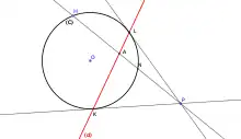 Dans le cas où (C) est non dégénérée, et si P est extérieur à (C), on peut mener par ce point deux tangentes à la conique. Appelons K et L les points de contact de ces tangentes. Alors, la polaire (d) du point P est la droite (KL) (voir Figure 1 dans le cas d'un cercle). Réciproquement, si une droite coupe la conique, son pôle est l'intersection des deux tangentes aux deux points d'intersection.