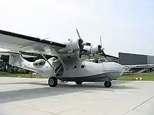 Le commandant Cousteau acquiert cet hydravion américain PBY-6A Catalina de la Seconde Guerre mondiale en 1974, à Fort Lauderdale en Floride, avec une capacité de 8 passagers, propulsé par 2 moteurs Pratt & Whitney de 2 x 1 200 ch, et un rayon d'action de plus de 1000 milles marins (1850 km).