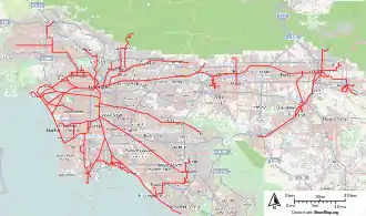 Le réseau était divisé en trois districts : Northern District : Pasadena, San Gabriel Valley incluant Alhambra, El Monte, Glendora, Monrovia, Pomona, San Bernardino ; Southern District : Long Beach, Newport Beach, Huntington Beach, San Pedro via Dominguez, Santa Ana, El Segundo, Redondo Beach via Gardena, San Pedro Via Torrance ; Western District : Hollywood, Burbank/Glendale, San Fernando Valley, Beverly Hills, Santa Monica, Manhattan/Redondo/Hermosa Beaches, Venice, Playa Del Rey. Au début, lorsque la compagnie fut créée, il existait un Eastern District, mais il fut rapidement intégré au Northern District.