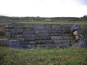 Le site est essentiellement composé de trois plates-formes superposées, construites sur une colline, avec leurs entrées ou portes situées à l'Est. Il a la forme d'une pyramide tronquée.