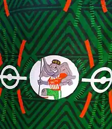 Les teintes prédominantes du pagne sont essentiellement vertes, une tonalité qui reflète les couleurs caractéristiques de la Confédération africaine de football (CAF) et du drapeau national. La présence élégante de l'éléphant, emblème national de la Côte d'Ivoire et mascotte de la compétition, se distingue magnifiquement. De manière distinctive, la coiffe traditionnelle Akan, hommage à l'un des six principaux groupes ethniques du pays, vient ajouter une note particulière au design. Du symbolisme traditionnel aux représentations artistiques contemporaines, le pagne se transforme en une œuvre vivante qui narre l'histoire de la Côte d'Ivoire et de sa passion pour le football[5],[6],[7],[8].