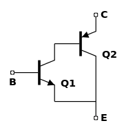 Ce montage est couramment utilisé pour obtenir un transistor capable de supporter de forts courants, tout en ayant un gain supérieur à celui d'un seul transistor, à la manière du montage Darlington[1].