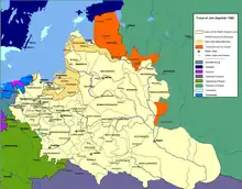 La guerre de Livonie (territoire correspondant aux actuelles Lettonie et Estonie), commencée en 1558, implique, outre la Confédération livonienne[1], la Russie, le royaume de Pologne et le grand-duché de Lituanie, unis en 1569 au sein de la république des Deux Nations, le royaume de Suède et le royaume du Danemark et de Norvège.