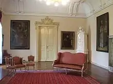 À l'intérieur se trouve une chapelle dite du Saint-Archange, bâtie en 1763, ornée notamment de décors évoquant l'arbre de Jessé. Son iconostase, de style baroque, est ornée d'une riche décoration en stuc ; ses peintures, dont une composition centrale représentant la Naissance du Christ, ont été réalisées entre 1761 et 1765 par Nikola Nešković. Le palais abrite également une icône venue de Kiev au XIVe siècle[2].