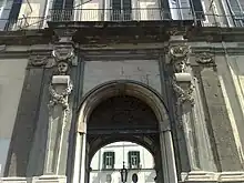 Après avoir récupéré le palais, Don Francesco le fit restaurer par l'architecte Luigi Vanvitelli, qui apporta des changements substantiels à l'escalier et aux portails. Le majestueux portail en marbre est entouré de cariatides ioniques. Malgré les graves dégâts causés par les bombardements de la Seconde Guerre mondiale, des fresques sont conservées sur les voûtes de nombreuses salles de l'entresol.