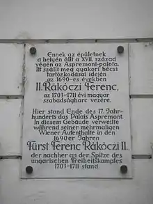 L'ancien bâtiment, construit vers 1625, arriva en la possession du feld-maréchal lieutenant Ferdinand Gobert, Comte d'Aspremont-Lynden de Reckheim vers la fin du XVIIe siècle. À cette époque, le bâtiment était donc connu sous le nom de Palais Aspremont, et une plaque sur le Palais rappelle que le Prince révolutionnaire hongrois François II Rákóczi y fut souvent invité. En 1714, le palais devint la propriété du comte György (Georg) Erdődy. En 1724, le palais fut agrandi par un architecte inconnu et pourvu d'une haute façade baroque. Des similitudes dans les façades suggèrent que le constructeur a vraisemblablement aussi conçu le Palais Neupauer-Breuner.