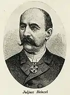 La famille Heinzel est probablement arrivée à Łódź depuis la Tchéquie ou la Basse-Silésie dans les années 1830[3]. En 1864, Heinzel créa son propre atelier de tissage mécanique pour les articles en laine. En quelques années (vers 1874), il devint le roi de la laine, possédant le plus grand complexe de production du Royaume de Pologne produisant des produits en laine et demi-laine[4].