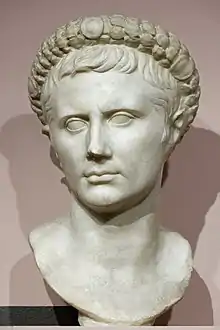 Parmi les portraits les plus remarquables, ceux d'un jeune Auguste, de peu postérieur à la bataille d'Actium en 31 av. J.-C. qui le porta au pouvoir, et d'un Auguste adulte dans sa pleine maturité, serein, la tête portant la couronne triomphale de feuilles de chêne, qui peut être rapprochée de celui de son épouse, l'impératrice Livie, embellie d'un riche et haut diadème à trophée d'épis et de boutons, qui l'associe à la bénéfique déesse Cérès[21].
