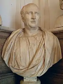 Parmi les nombreux personnages du monde grec, quelques portraits de l'époque romaine sont également exposés, dont celui de Cicéron, célèbre homme d'État et homme de lettres, représenté à un peu plus de cinquante ans, au sommet de ses capacités intellectuelles et politiques. Ce buste renvoie à la fin de l'Hellénisme, mais le souci de réalisme du portrait romain d'époque républicaine le plus authentique y est également évident[22].