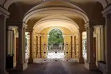 - Le rez-de-chaussée – auquel on accède par un atrium à colonnades doubles qui donne sur le jardin — initialement occupé par les locaux de service de la résidence elle-même,