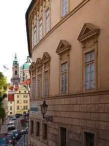 - (cz) Cet article est partiellement ou en totalité issu de l’article de Wikipédia en tchèque intitulé « Palác Schützenů » (voir la liste des auteurs).