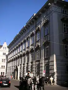- (de) Cet article est partiellement ou en totalité issu de l’article de Wikipédia en allemand intitulé « Palais Starhemberg (Minoritenplatz) » (voir la liste des auteurs).