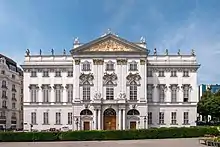 Le palais a une façade de trois étages richement décorée. Le maître Johann Georg Haresleben de Kaisersteinbruch a reçu des commandes de tailleurs de pierre, qui ont utilisé du Kaiserstein dur pour le portail, le balcon et les marches de l'escalier. L'imposant escalier mène à la salle des fêtes. Il y a des reliefs sur de nombreuses fenêtres représentant des scènes de légendes anciennes.